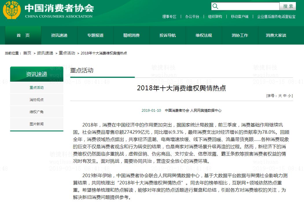 2019年1月,中国消费者协会联合人民网舆情数据中心发布的《2018年十大消费维权舆情热点》显示,“个人信息保护缺失”高居当年维权舆情热点排行榜第二位。